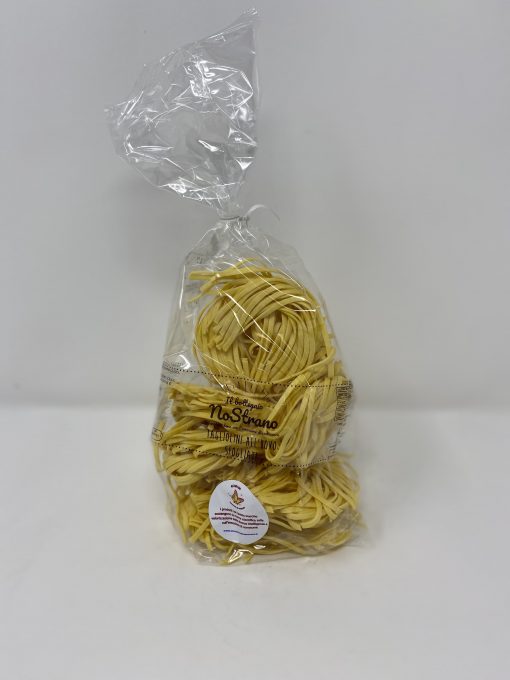 I Tagliolini Il Bottegaio NoStrano sono realizzati con sole uova fresche allevate a terra in Italia. La loro caratteristica è di essere laminati (antica pratica recuperata) esattamente come facevano una volta.