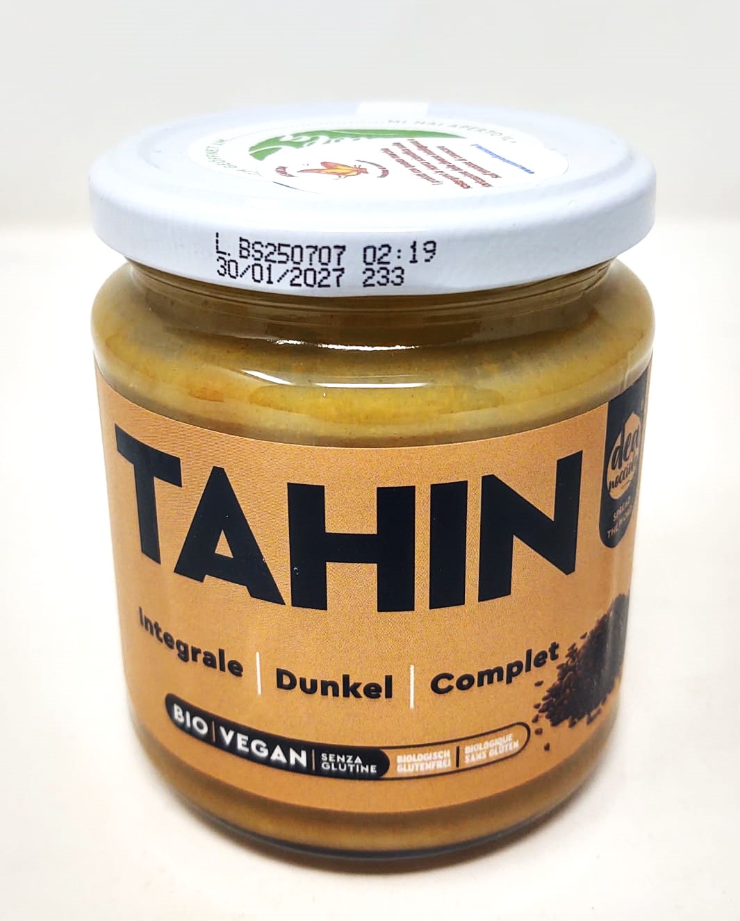 Crema di semi di sesamo decorticato. Ingredienti: 100% semi di sesamo decorticati biologici